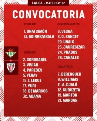El Betis disputa este domingo un duelo importante para seguir acercándose a las posiciones europeas. Los verdiblancos reciben al Athletic en el Villamarín.