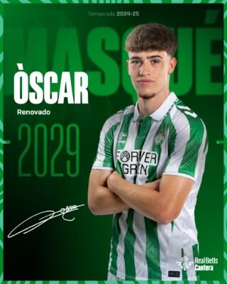 Tras Rodrigo Marina, el cuadro verdiblanco ha oficializado la renovación de Óscar Masqué. El jugador firma su nuevo contrato con la entidad hasta el próximo año 2029.