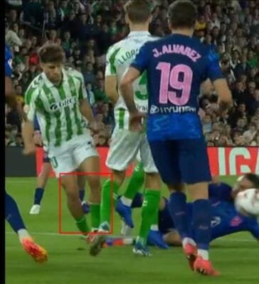 El mediocentro fue a disparar desde fuera del área tras un rebote de un córner y realizó una dura entrada con los tacos sobre la pierna de Abde. La jugada no fue ni revisada desde la sala del VAR.