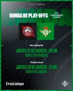 El factor campo en la eliminatoria lo tiene el Betis, que será local en la vuelta el próximo jueves 29 de agosto a las 21:00. El club verdiblanco es muy favorito para poder acceder a la primera ronda de esta competición.