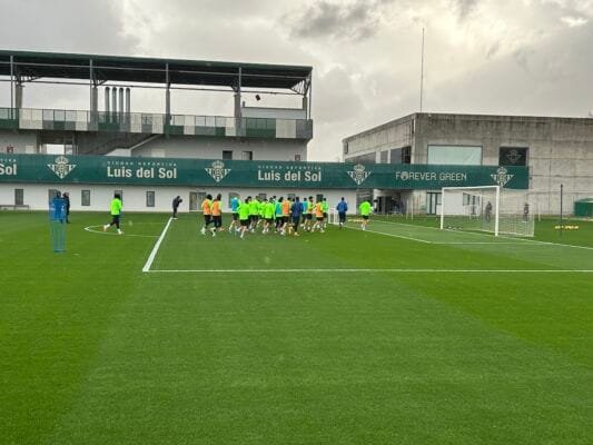 Última sesión de entrenamiento del Betis previo al viaje a Portugal, para disputar el encuentro de vuelta de la eliminatoria de octavos de final de la Conference League.