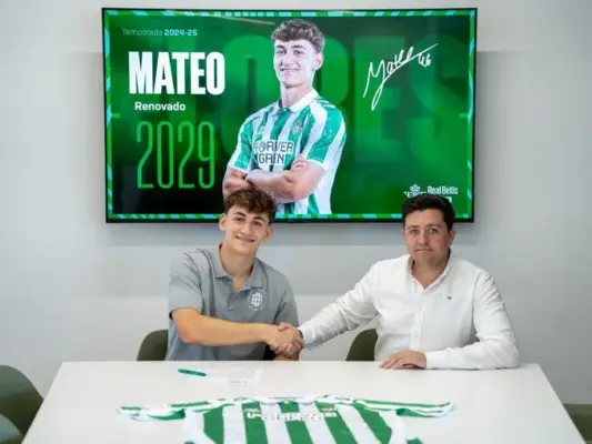 Este lunes, el club bético oficializó la renovación de Mateo Flores, que ha firmado un nuevo contrato hasta el próximo año 2029. El canterano quedaba libre a final de esta temporada.