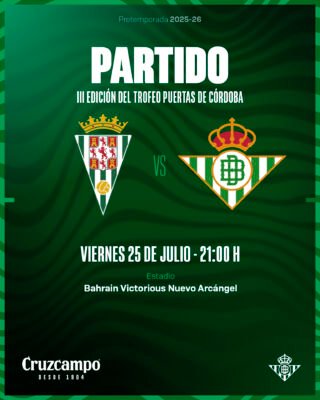 El Betis ha oficializado este lunes su tercer compromiso de pretemporada, que será el próximo viernes 25 de julio ante el Córdoba en el Nuevo Arcángel.