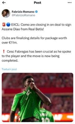 💣🔥 Acuerdo con el Como para la venta de Assane Diao