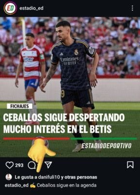 El último es dándole “me gusta” a una publicación de los compañeros de ‘Estadio Deportivo’ donde informaban del interés del Betis en fichar a Ceballos en el próximo mercado de fichajes.
