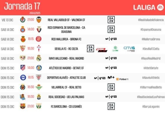 La Liga ha dado a conocer este lunes la fecha y horario del encuentro en Villarreal, que será el próximo domingo 15 de diciembre a las 18:30 horas en el Estadio de la Cerámica.