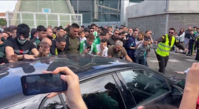 🔥🟢 Así ha sido la llegada de los jugadores del @RealBetis al Benito Villamarín para el entrenamiento previo a #ElGranDerbi de mañana. pic.twitter.com/D7cpFh92Pw
