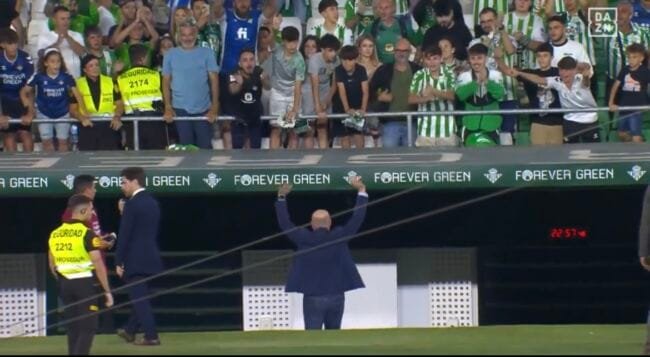 Al término del partido, la afición bética reconoció el trabajo de Pepe Mel en sus diferentes andaduras en el club verdiblanco. Con una pancarta que decía “Gracias por dar luz a los días más oscuros” y con el cántico con el nombre del técnico madrileño.