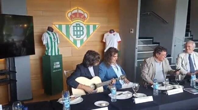 Un cantante de un conocido grupo de música sevillano empezó a cantar el himno del Sevilla mientras algunos de los presentes le seguían y le grababan. Esta situación ha causado muchísimo revuelo en las redes sociales.