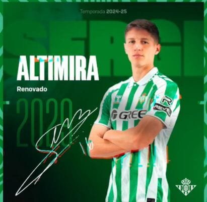 El Betis ha oficializado este viernes la renovación de Sergi Altimira hasta 2029. El mediocentro centro ve incrementado su salario y prolonga un año más su vinculación.