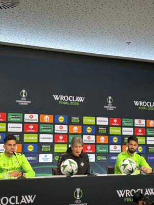 El Betis disputa este miércoles el partido más importante de su historia, con la posibilidad de levantar la Conference League. Los de Pellegrini se han ejercitado en el escenario del partido.