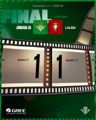 Los de Pellegrini han perdido dos puntos ante Osasuna en el Benito Villamarín. El tanto inicial de Cucho Hernández fue igualado en el tramo final por Budimir.