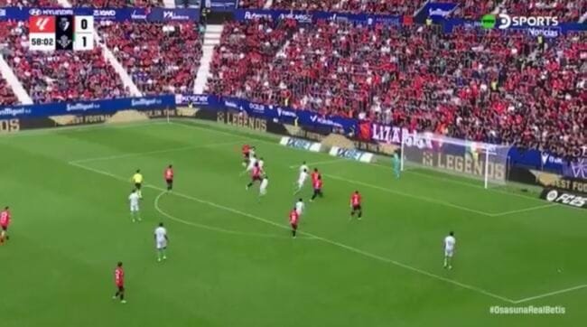 Ante Osasuna fue una jugada de estrategia, con dos toques dentro del área propia. Catena le ganó la acción aérea a Bellerín y dejó solo a Torró que empujó sin oposición a portería.