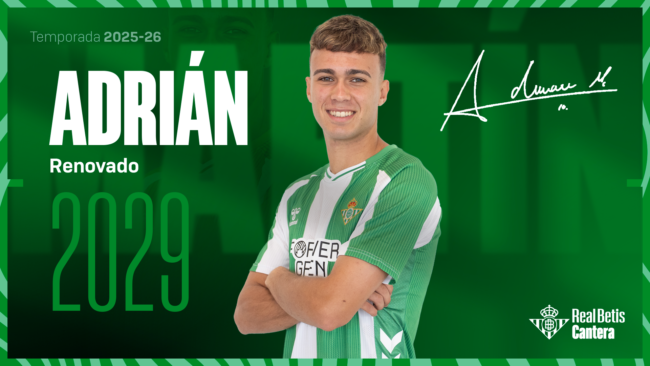Tras Rodrigo Marina y Masqué, el cuadro verdiblanco ha cerrado la renovación de Adrián Martín. Firma hasta el próximo año 2029.