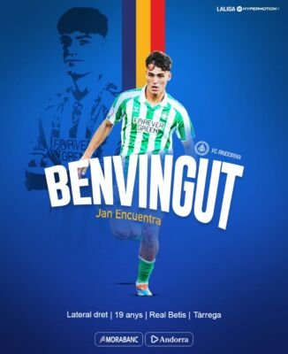 A sus 19 años, el lateral ha firmado su vinculación con el cuadro andorrano hasta el próximo año 2028, dentro del proyecto del ex futbolista del Barcelona de mantener en la élite a su equipo.