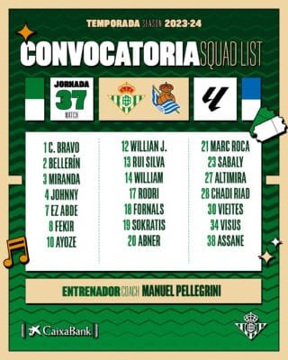 ¡Nuestra convocatoria para el #RealBetisRealSociedad! pic.twitter.com/IDBE9nJdOz