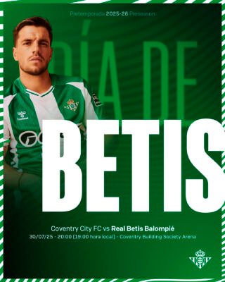 El partido ante el Coventry será a las 20:00, hora española. Será televisado por Betis TV y el canal de YouTube del equipo heliopolitano, pudiéndose ver en cualquier punto del mundo.