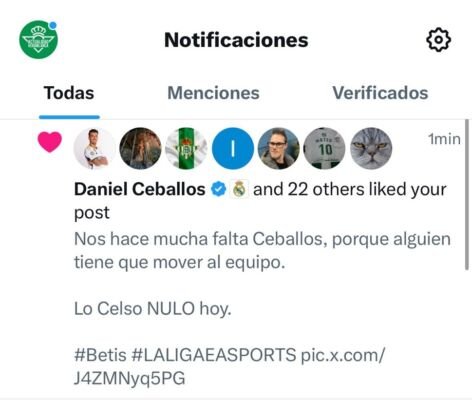Debido a ello, una cuenta dedicada al Betis en ‘X’ puso un tweet sobre la necesidad de Dani Ceballos en este equipo, al cual el utrerano le dio ‘me gusta’. Las redes se revolucionaron.