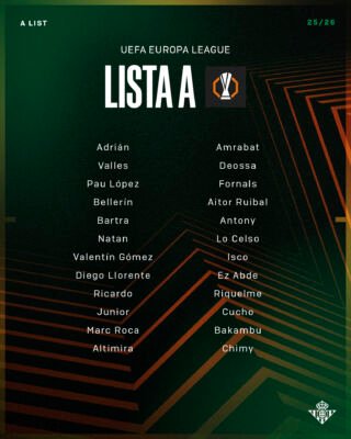 Dentro de esta estrategia, algunos han sido canteranos del cuadro verdiblanco y permiten a Manuel Pellegrini no realizar ningún descarte en la lista europea. Una situación que no ha ocurrido en ninguna de las temporadas anteriores.