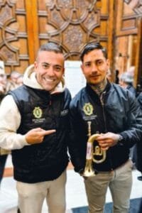 Ya salieron a la luz sus espinilleras con una foto del Cautivo de Málaga. Luego, sus declaraciones diciendo que se iba a tatuar al Cautivo y a la Macarena. Ahora, ha ido a visitar a la Basílica de la Macarena y a un ensayo cuaresmal de la Centuria, posando con una corneta.