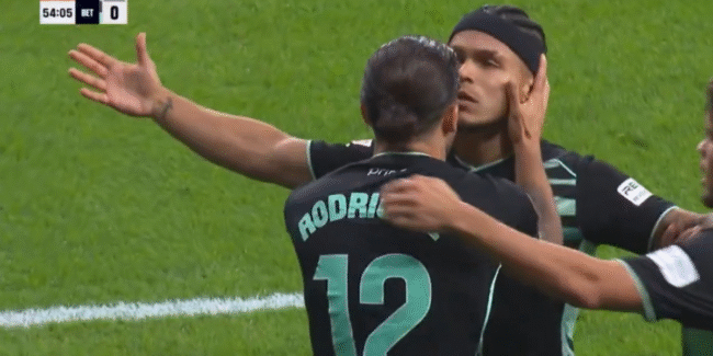 Le ha quitado la titularidad a Junior Firpo, que sigue sin reencontrar su mejor nivel físico y futbolístico. Ricardo dejó dos imágenes, además de la gran asistencia a Cucho Hernández en el primer gol verdiblanco.