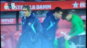 Durante el encuentro en Girona ocurrió una situación que extrañó a muchos aficionados. Por la lesión del Chimy Ávila, Pellegrini decidió sustituirlo por Abde, de quien sacaron imágenes en televisión que se estaba preparando para salir.