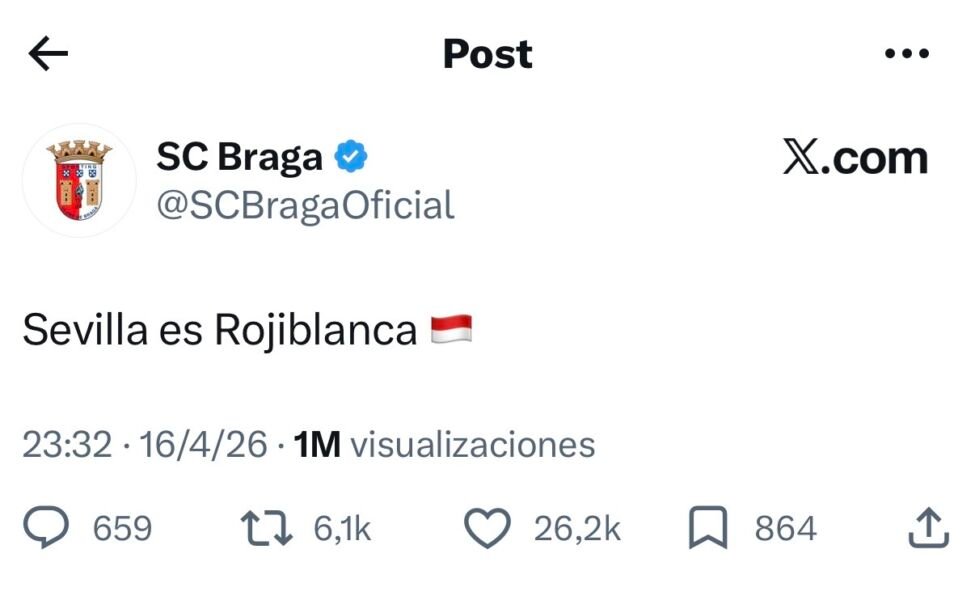 Minutos después de certificar su pase a semifinales, el Sporting de Braga colgó un tweet con la frase “Sevilla es rojiblanca”. De inmediato, gran parte de la afición del Sevilla FC interpretó esta publicación como un guiño de complicidad hacia ellos, aprovechando la herida abierta del eterno rival.