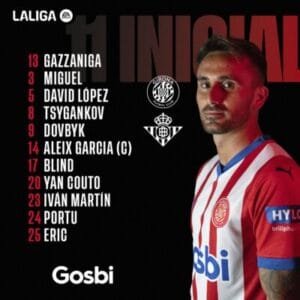 Por su parte, el Girona saca lo esperado, teniendo en cuenta la baja por acumulación de tarjetas de Savio. Vuelve David López, Tsygankov y Miguel al once inicial.