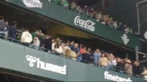 Los asistentes en esa zona tuvieron unos gestos desafortunados a aficionados béticos de la grada de gol norte y voladizo, con señas de “7” con los dedos de las manos y muchos gestos de “tragar”. Algunos aficionados béticos de la misma grada de preferencia acudieron a esa zona y se montó un pequeño tumulto que fue subsanado por miembros de seguridad, evitando que fuera a más.