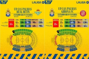 El estadio de Gran Canaria presentará un pobre aspecto por la dinámica del equipo, la hora del partido (18:30 horas allí un día entre semana) y por la decisión de subir considerablemente el precio de las entradas para evitar una marea bética en sus gradas.
