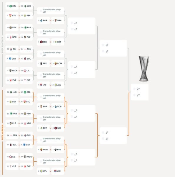 Regla de Octavos: El ganador de la eliminatoria entre el Nottingham Forest/Viktoria Plzen y el vencedor del Fenerbahçe/Panathinaikos son los equipos que, por posición en el cuadro, se cruzarán con el Betis o el Midtjylland (3º).