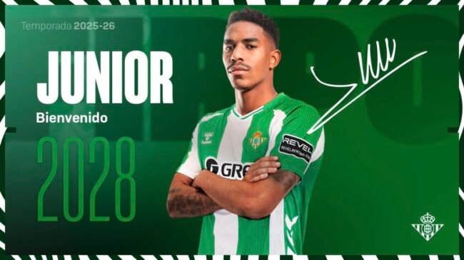 A la llegada de Álvaro Valles, Natan y Riquelme se ha unido oficialmente este jueves la de Junior Firpo. El lateral firma por el Betis después de quedar libre tras acabar su contrato con el Leeds United.