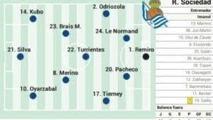 La duda en el equipo verdiblanco es saber quién acompaña a Johnny Cardoso en el centro del campo, yo apostaría más por Marc Roca. En la Real Sociedad, la posición de extremo, con Sheraldo Becker con más opciones.