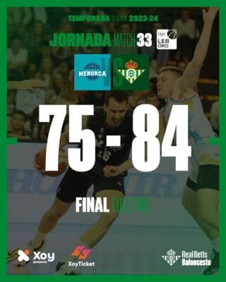 Una de cal y otra de arena. El Betis de baloncesto ha conseguido una importante victoria en Menorca (75-84) que le coloca dentro de la zona de playoff a falta de una jornada y pendiente de lo que haga Fuenlabrada.